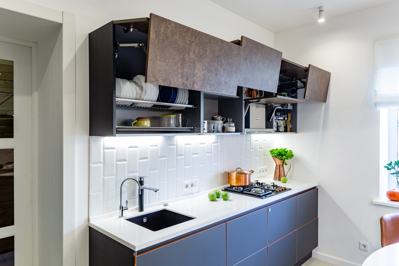 Обращаем Ваше внимание, что цена за погонный метр включает в себя: фасады выбранной категории, влагостойкую столешницу HPL (Германия) высокой прочности, корпуса ЛДСП Egger (Германия) с кромкой ABS, ящики с доводчиками , петли с доводчиками, ручки, алюминиевый поддон в стол под мойку, сушка (Италия), цоколь Volpato (Италия). Из расчета в размере 2400 мм.