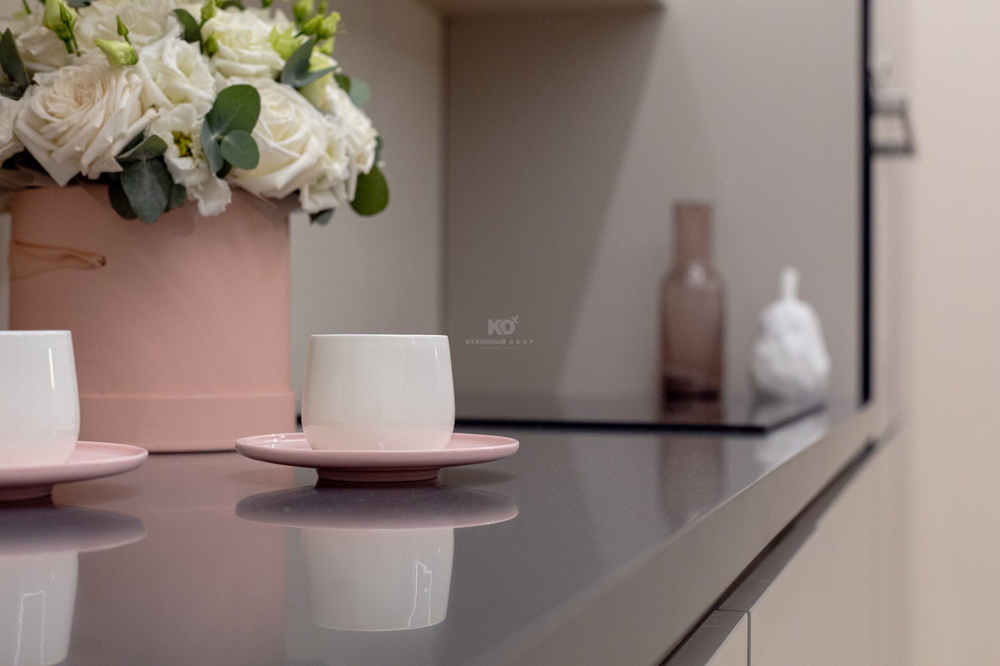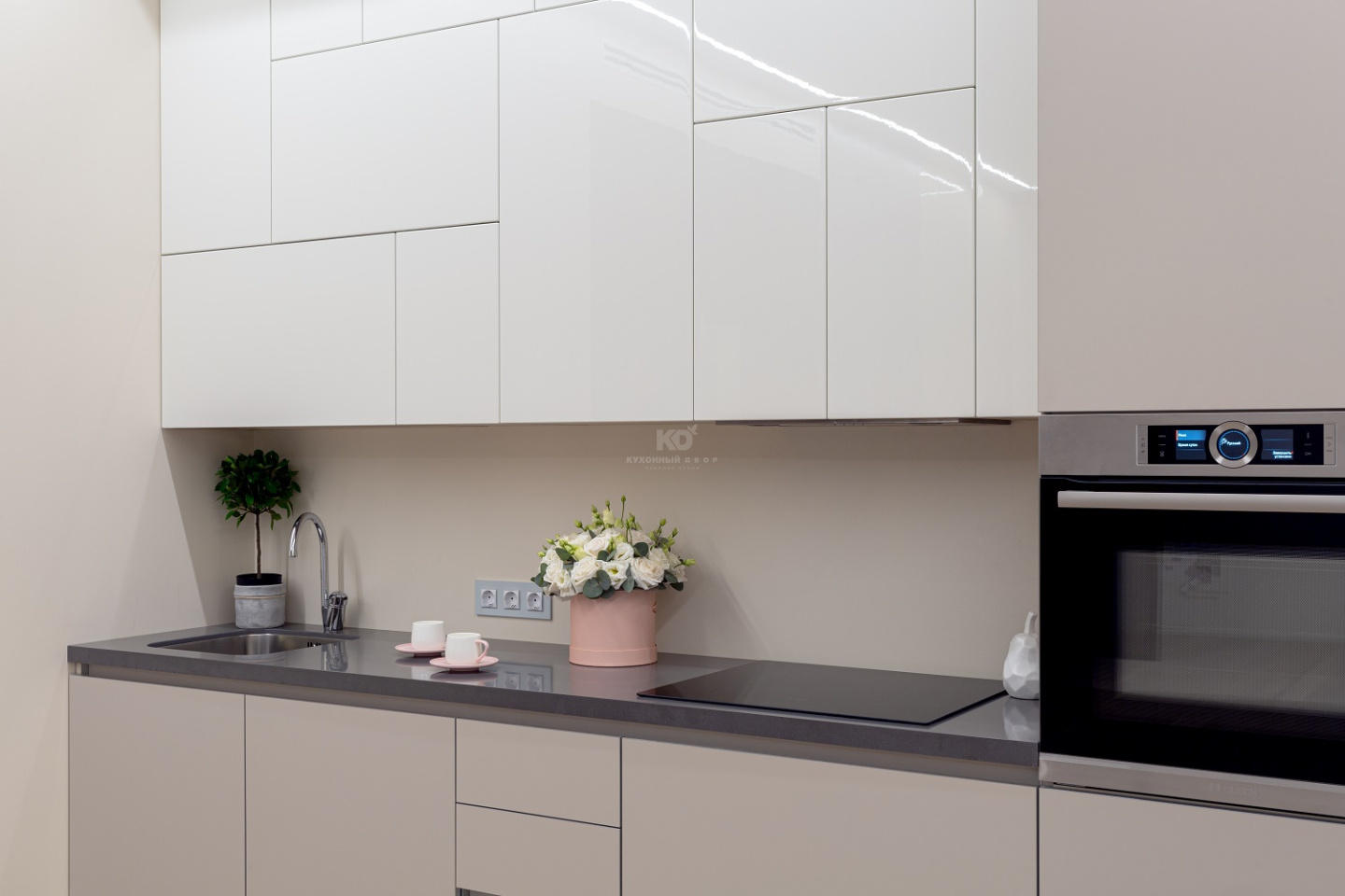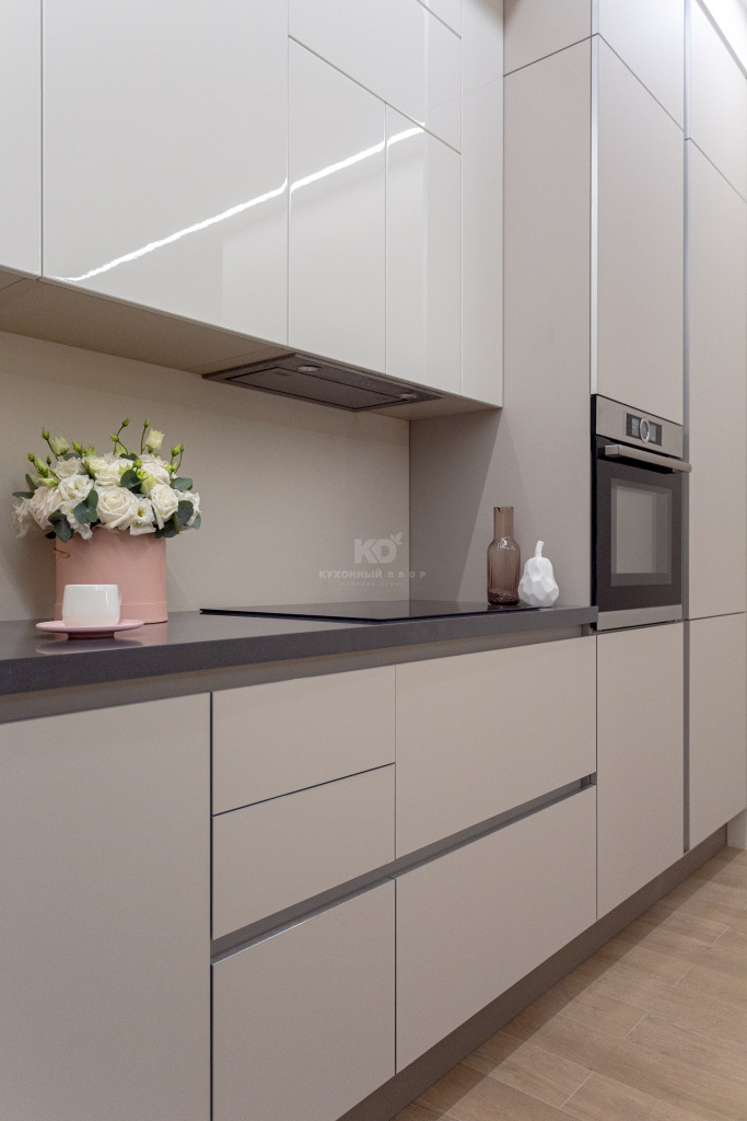 В основу образа легла модель «Ханна Стил», в которой использовано немало инновационных решений. Ее слегка бежевые, почти белые фасады, имеют покрытие «ExtraTouchMatt». Их «бархатистая» текстура будит особые эмоции при каждом прикосновении. При этом получать тактильное удовольствие можно, не опасаясь за чистоту кухни. Фасады «Ханны Стил» устойчивы к загрязнениям и крайне неприхотливы в уходе! А элегантные серебристые кромки добавляют к этой практичности шарм и особую красоту.