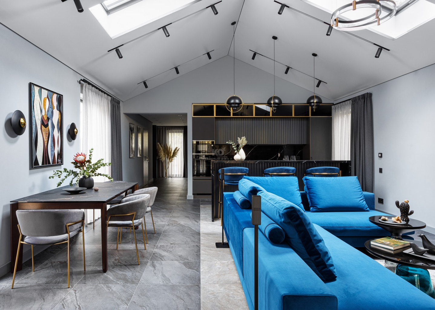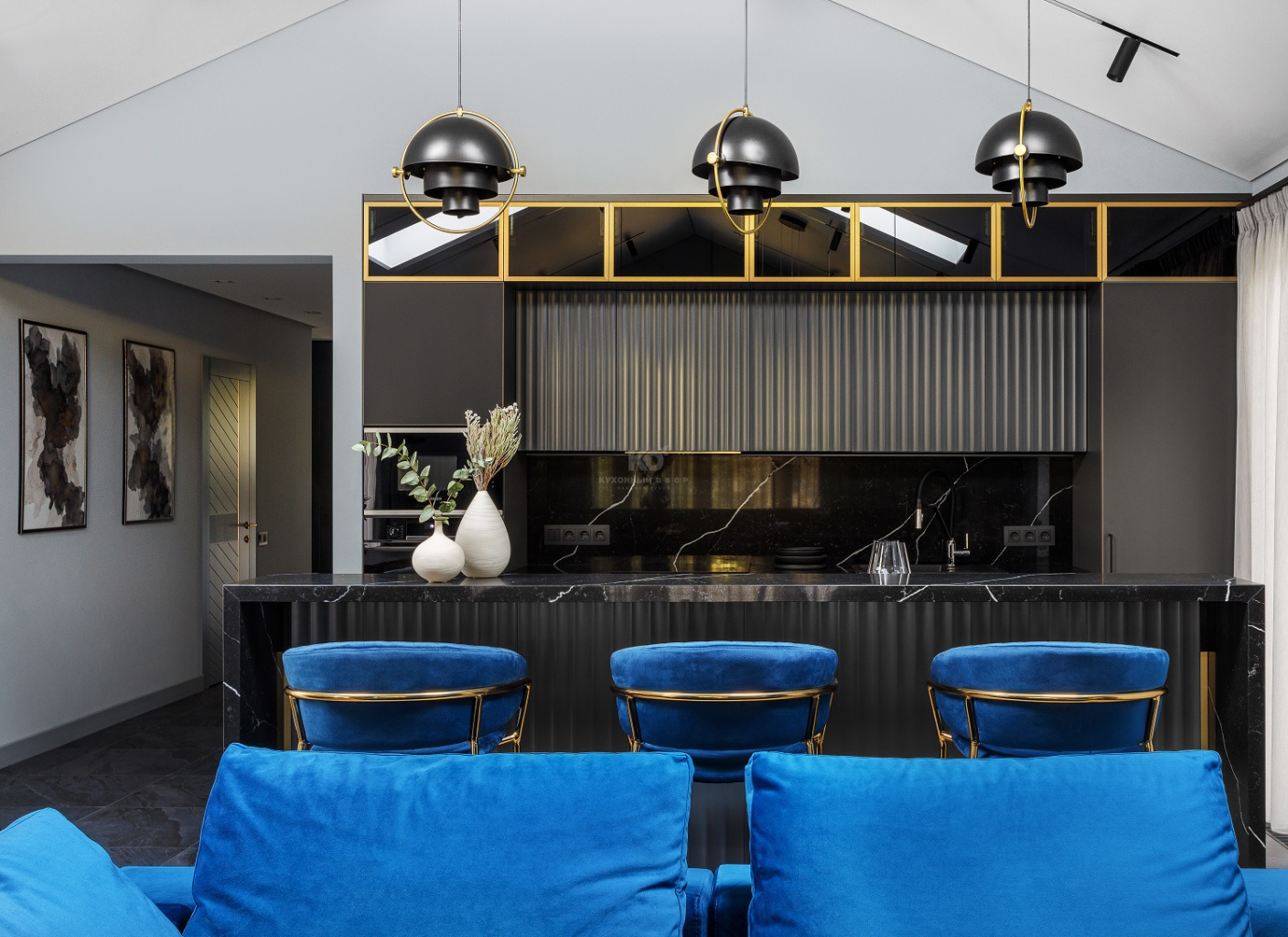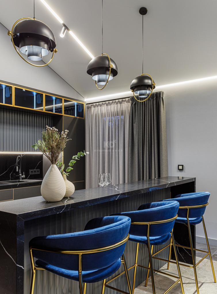 В рамках этого проекта для барнхауса нам посчастливилось работать со специалистами дизайн-студии «SvoiDesign». Дизайнеры Тамара Воронцова и Ольга Углова детально проработали интерьер, а гибридная кухня от КД стала одной из его жемчужин!