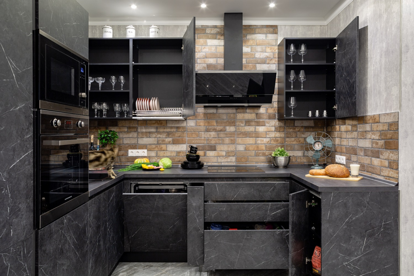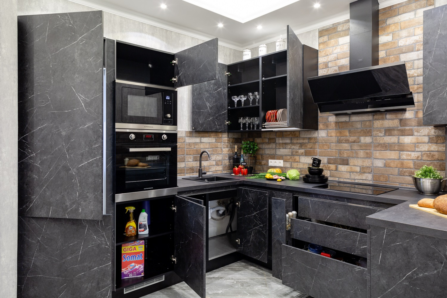 Перед Вами невероятно красивая «Ноа Лофт» с фасадами из экоплиты. Этот инновационный, экологически чистый и удивительно долговечный материал способен имитировать практически любые текстуры. В нашем случае он выглядит и «ощущается» как чёрный мрамор. Лицевые, тыльные и даже торцевые части фасадов неотличимы от дорогой натуральной породы. Визуальное и тактильное сходство идеальны, под стать общей стилистике модели. А в основе этой стилистики – ультрасовременный минимализм.