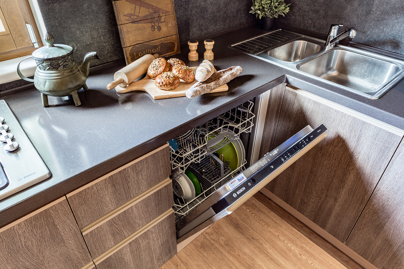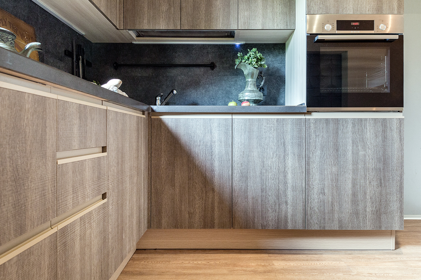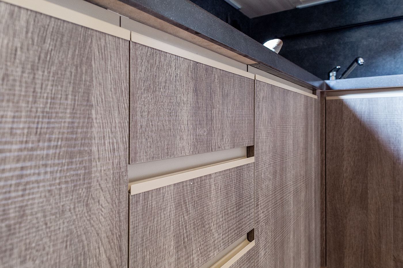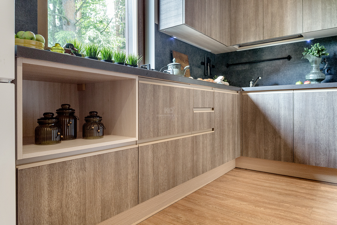 Ну, и конечно же, нельзя не отметить эстетику модели. Внешность «Ноа» отточена и сбалансирована. Строгий минимализм, «одетый» в природные фактуры – идеальный выбор для просторного дома. Фасады без ручек находятся в абсолютной гармонии с окружающим интерьером, а фартук и столешница «под камень» делают образ подчёркнуто-изысканным. Такова кухня Антона Привольнова. Кухня, в которой нет ничего лишнего!
