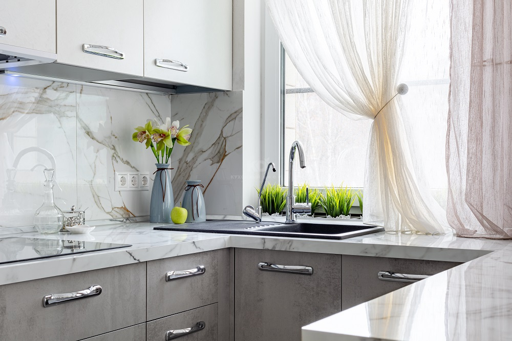 А ещё здесь безумно приятно готовить! Во-первых потому, что кухня расположена у окна и буквально купается в солнечном свете. Во-вторых потому, что она оснащена великолепным набором аксессуаров и бытовой техники. Ну и в-третьих, «Стоун» выполнен по всем канонам современной эргономики. Продукты, утварь и посуда здесь всегда под рукой! Такой и должна быть современная кухня-гостиная, где готовка и отдых приносят равное удовольствие!