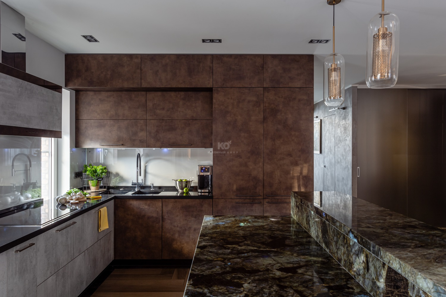 Цветы, растущие на скалах, особенно прекрасны… С эко-декором дела обстоят также, согласитесь! Нежная зелень великолепно смотрится на этой брутальной кухне в стиле «лофт». Кухню создал «Кухонный Двор», а за красоту и продуманность всего интерьера отвечала Александра Панько. Давайте посмотрим, что получилось в ходе совместной работы талантливого дизайнера и ответственной бренда!