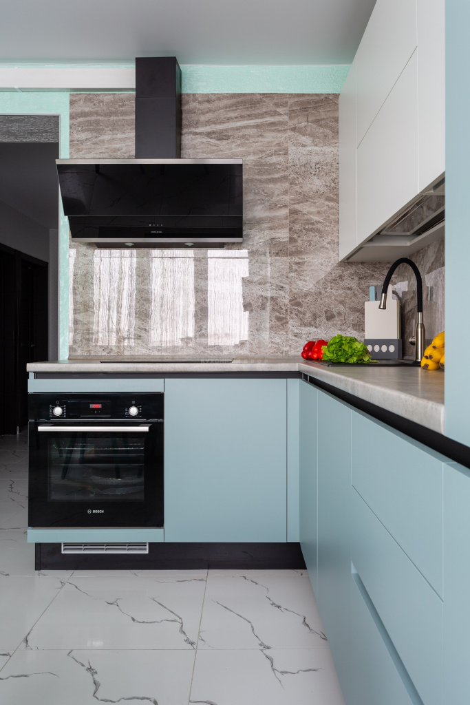 Как думаете, какой цвет у удачи? Очень возможно, что нежно-голубой с добавлением белого и чёрного. По крайней мере именно такая палитра у гарнитура «Стоун Колор», установленного в квартире Валентины Цыбы. И мы не зря заговорили об удаче, ведь Валентина получила эту кухню с невероятной скидкой в 100 000 рублей как одна из победительниц акции «Дарим Кухни» от КД! Получается, хозяйке повезло с нами? Да, как и нам с ней, ведь Валентина – обладательница прекрасного вкуса. В этом проекте воплотились все её идеи об удобном минималистичном интерьере!
