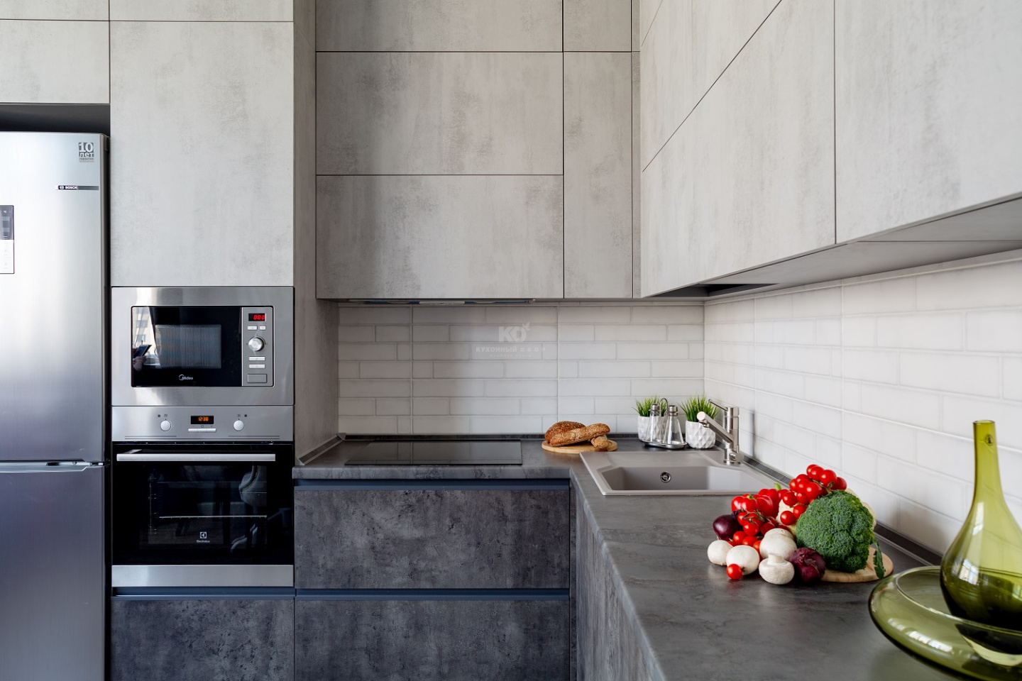 «Стоун» семьи Ромашиных выглядит очень футуристично. Будучи монолитным и «лофтовым», он, вместе с тем, сохраняет живые эмоции. На этот эффект здесь работает всё: уникальные материалы, лучшая техника и аксессуары, безупречный дизайн. Кто-то говорит, что кухня – сердце дома. Сердце с фактурой «под бетон» будет наполнено страстью, если за дело берется «Кухонный Двор»!