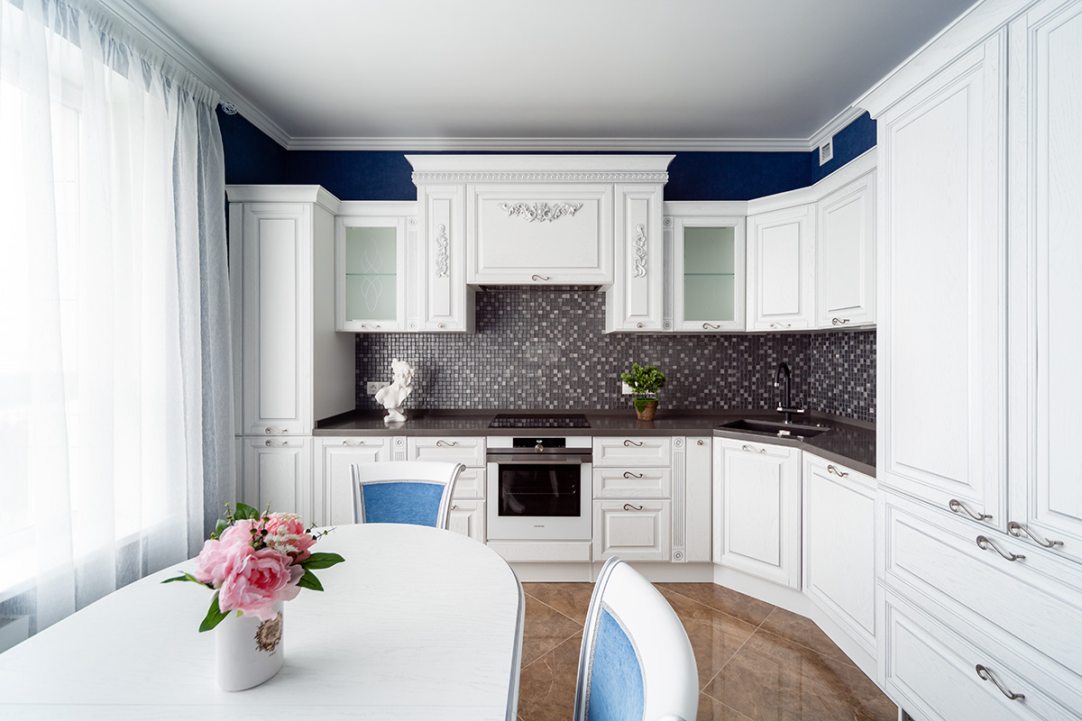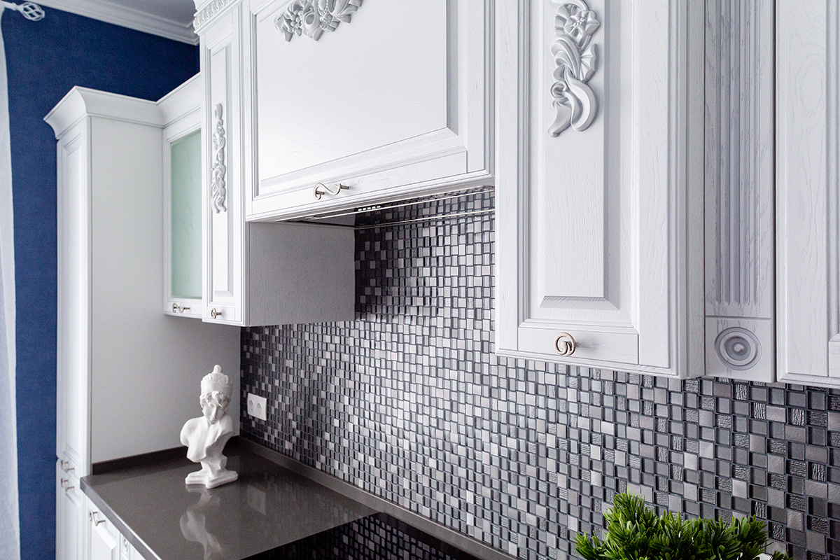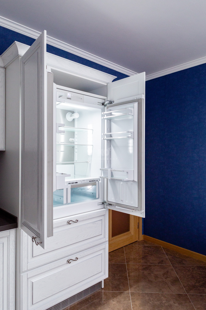 Элементы кухни расположены в полном соответствии с современными правилами эргономики. Так, интегрированная в акриловую столешницу мойка равноудалена от холодильника и зоны готовки. Благодаря этому даже самые сложные блюда создаются быстро и легко. Хозяева могут быть довольны, ведь их «Виконт» – это современные решения в безупречном классическом облике!