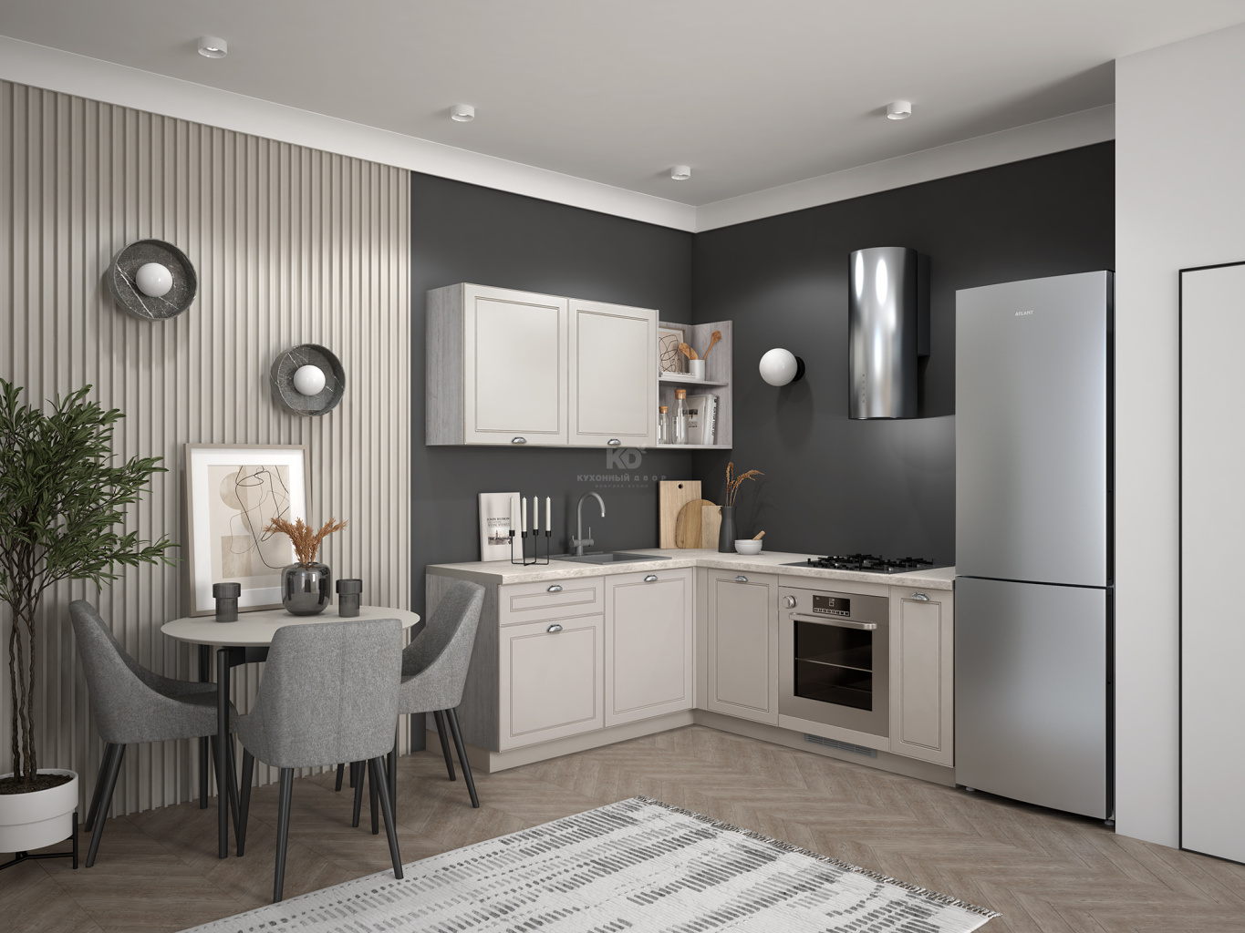 Кто сказал, что классика не готова адаптироваться под стандарты скандинавского минимализма? Доказываем, что готова! Лея гармонично сочетание в себе мотивы прошлого и тренды настоящего. Мягкая цветовая палитра и аккуратные детали создают атмосферу уюта и гармонии. Лаконичные фасады с изящной фрезеровкой и открытые полки придают интерьеру нотку той самой утончённости, а продуманная Г-образная архитектура даёт ощущение комфорта от каждого контакта с нашей Леей. Идеально решение для тех, кто кто ценит традиции в сочетании с функциональностью.