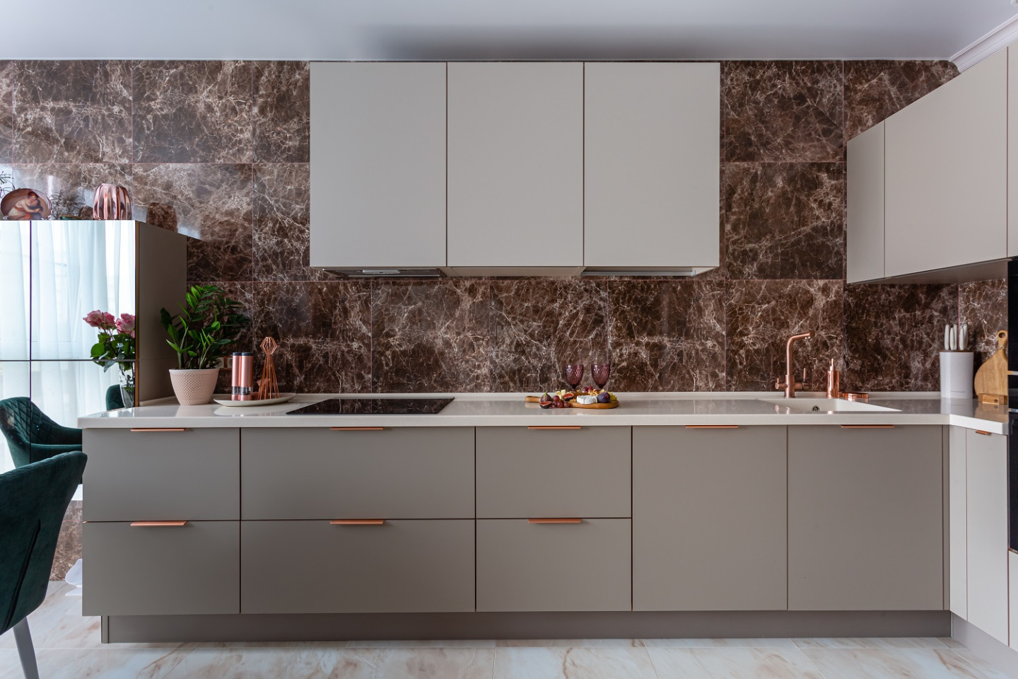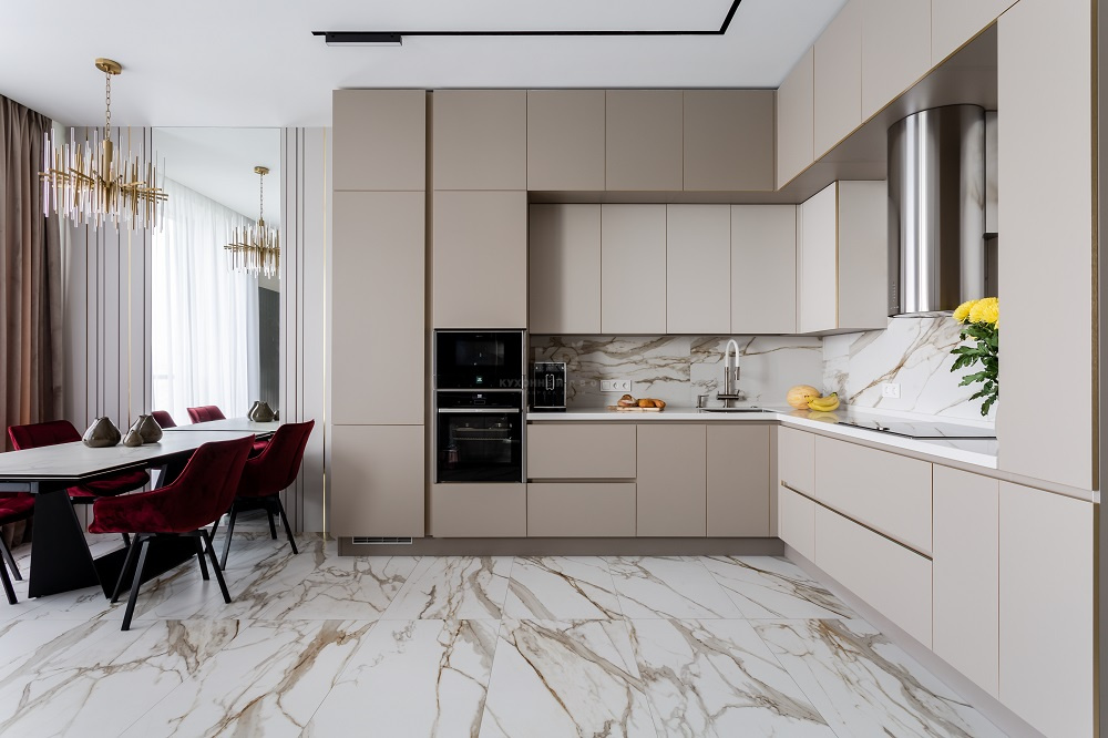 Обращаем Ваше внимание, что цена за погонный метр включает в себя: фасады выбранной категории, влагостойкую столешницу HPL (Германия) высокой прочности, корпуса ЛДСП Egger (Германия) с кромкой ABS, ящики с доводчиками , петли с доводчиками, ручки, алюминиевый поддон в стол под мойку, сушка (Италия), цоколь Volpato (Италия). Из расчета в размере 2400 мм.