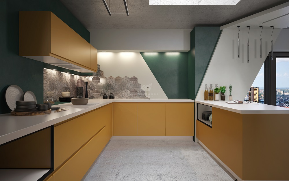 Зачастую используются два, реже три оттенка. Богатая цветовая палитра элитных угловых кухонь в стиле модерн дает возможность воплощать неординарные образы.