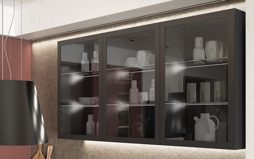 А витражные шкафы? Они «примешивают» к этой лёгкости серьёзность и благородство. Фасады в застеклённой зоне имеют очень красивую рамку из анодированного алюминия. Подчёркнуто люксовое решение!