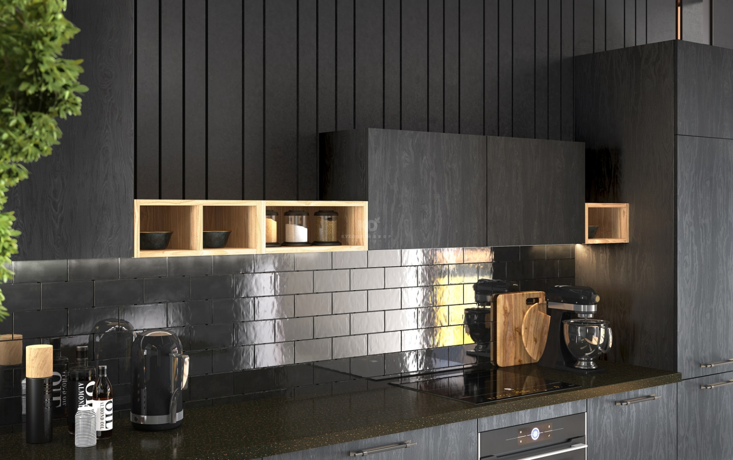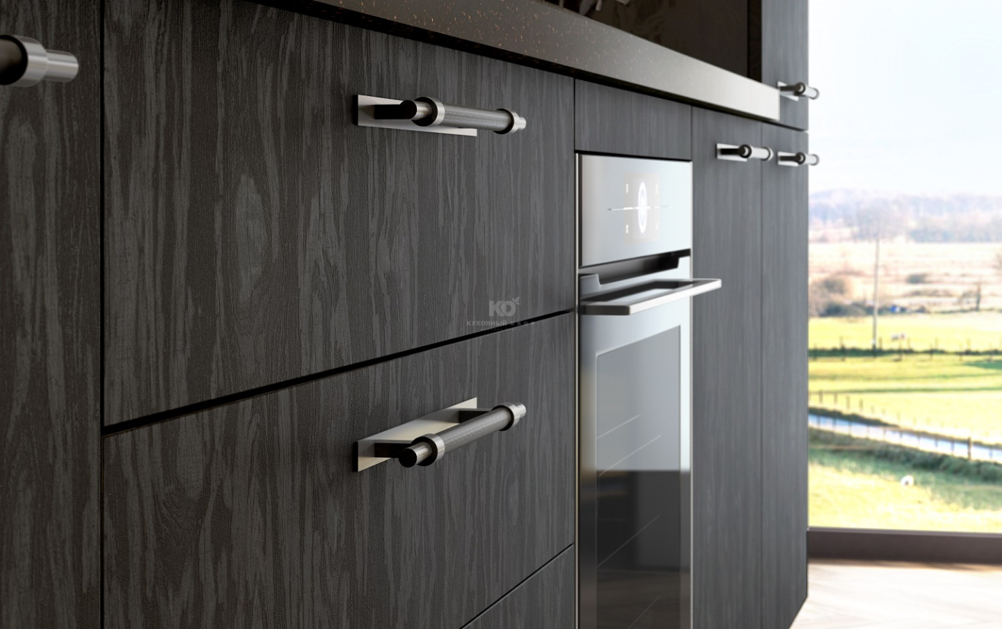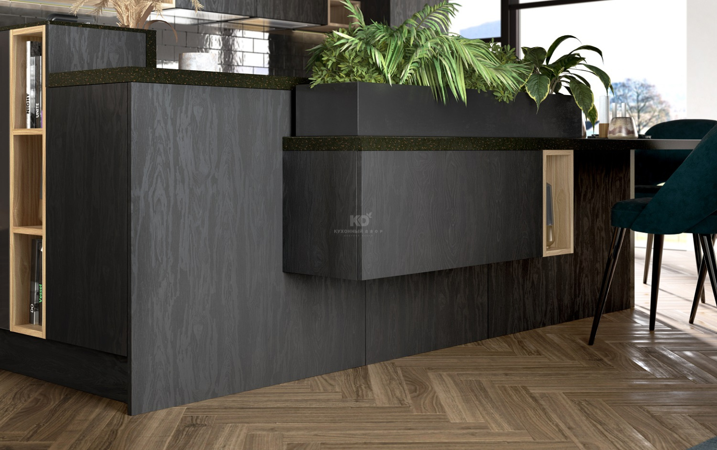 «Ноа» первой в коллекции КД получила уникальные фасады с текстурой обожжённого ясеня. Глубокое тиснение обеспечивает детализованную передачу древесной фактуры как визуально, так и на ощупь. В сочетании с открытыми элементами из светлого дерева, «обожжённые» фасады создают стильный контраст. Также для «Ноа» доступны абсолютно новые лаконичные ручки. Блистая сталью, они восхитительно смотрятся на матовых поверхностях!