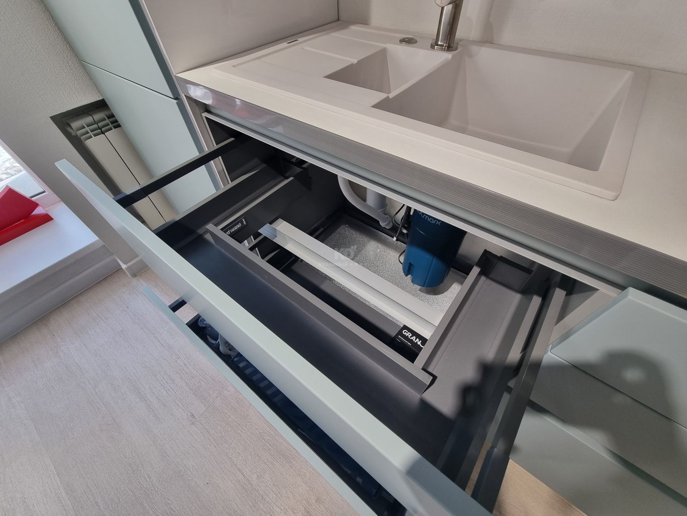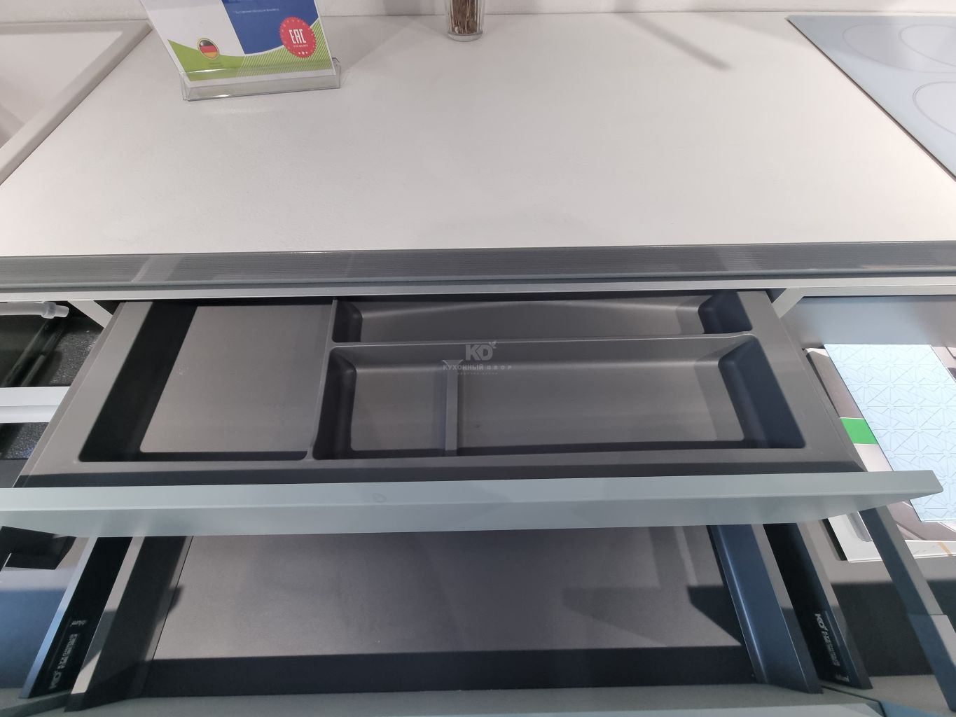 Фасады из МДФ и экомембрана, самовосстанавливающееся покрытие (Regen Skin) - это суперматовая бархатистая поверхность в сочетании с белым глянцем.