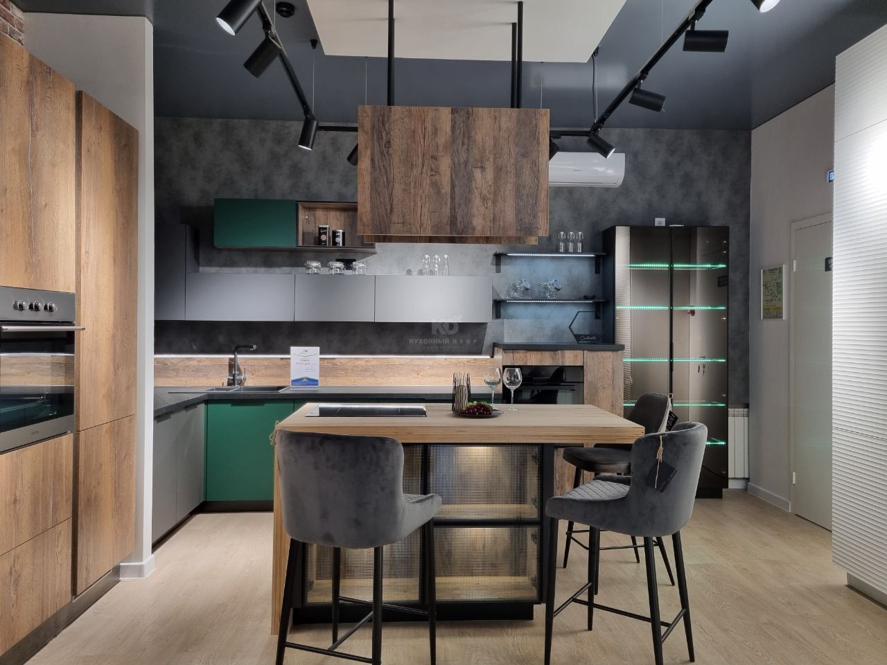 Остров: цвет графит+ дерево, столешница высотой 11 см.