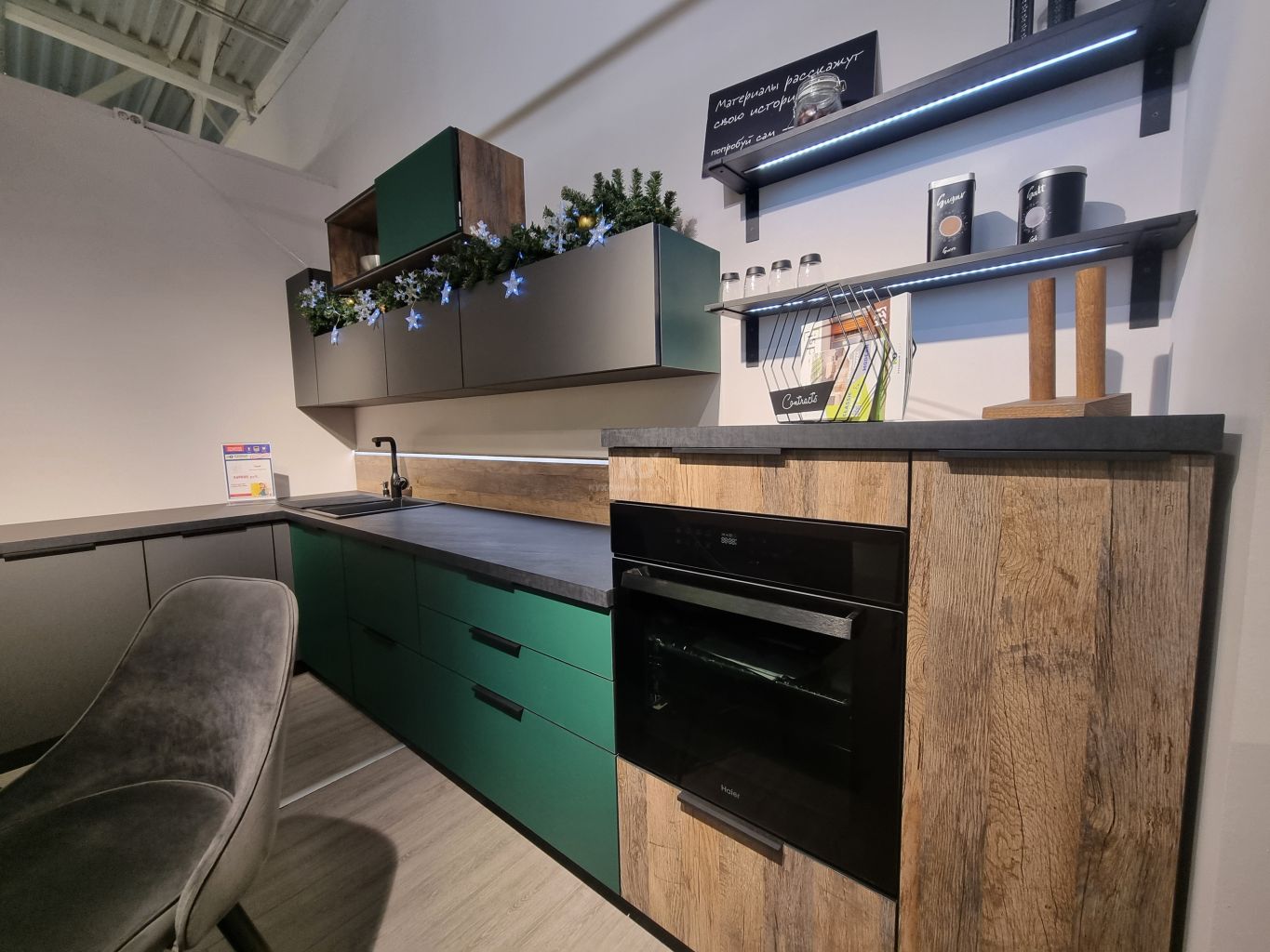 Фартук с интегрированной подсветкой Z-line, слайдер в верхнем шкафу, сушка в нижней базе.