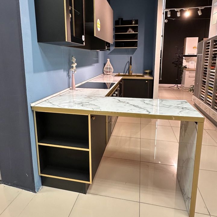 Размеры — барная стойка -1500 мм х 600 мм., рабочая зона - 3050 мм., правая часть - 1200 мм