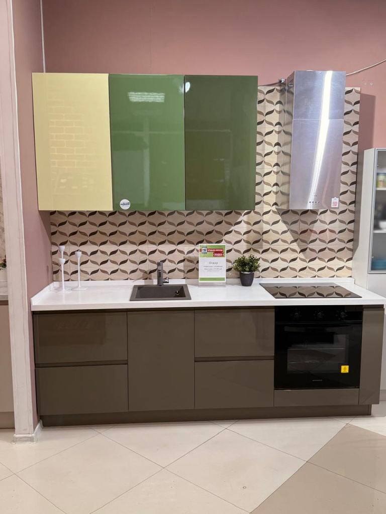 В стоимость образца входит мебель, столешница, интегрированная мойка, но без учета техники и аксессуаров.