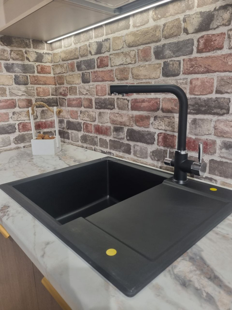 В стоимость входит: мебель, столешница подсветка и мойка.