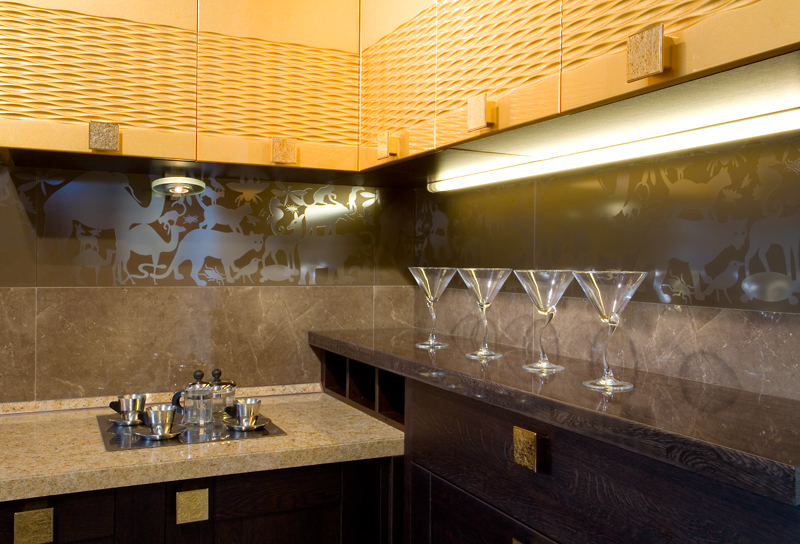 Мы предлагаем добавить Вашей кухни невторимости за счет фрезеровки фасадов, добавления изящной лепнины или уникальной возможности перенесения на поверхность фасада точной копии узора обоев, вензелей и даже автопортретов. Аппликации выполняются из немецкой пленки Oracal.