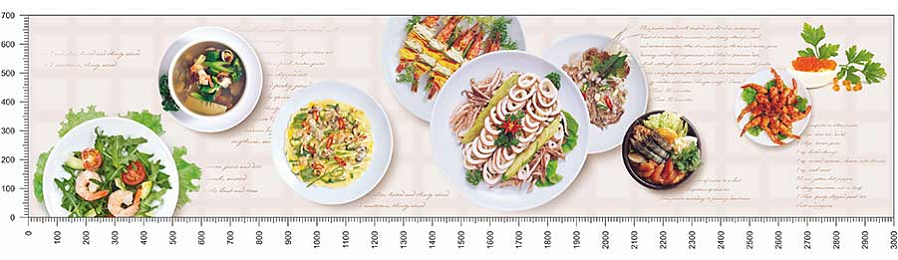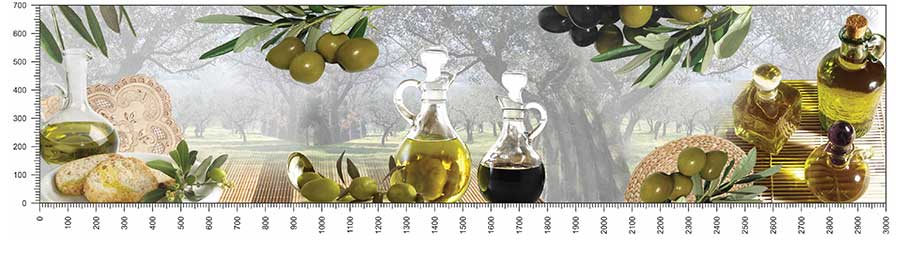Отличная альтернатива кухонному фартуку из плитки! Оригинальное изображение, перенесенное на внутреннюю поверхность стеклянной стеновой панели с помощью пленки Oracal, добавит кухне определенной тематики и сделает её неповторимой.