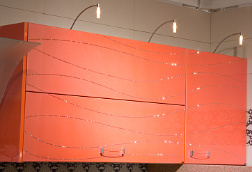 Кристаллы Swarovski – признанный символ роскоши, эксклюзивности и индивидуальности! Уже более 100 лет эти «искусственные бриллианты» пользуются огромной популярностью, как у настоящих икон стиля – звезд шоу и теле-бизнеса. Сегодня модные кутюрье с мировым признанием декорируют свои коллекции этим сверкающим дождем. Теперь и у Вас появилась возможность украсить свою кухню неповторимым блеском страз Swarovski. Инкрустация стразами происходит вручную умелыми руками мастеров-декораторов бренда «Кухонный Двор», что придает изделию особую ценность и эксклюзивность. Сияющие, словно звездная россыпь на ночном небе, кристаллы Swarovski в качестве декоративных элементов для кухни могут быть размещены: