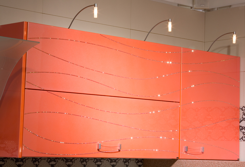 Кристаллы Swarovski идеально подходят и изящным кухонным гарнитурам в классическом стиле, и ярким моделям в стиле модерн.