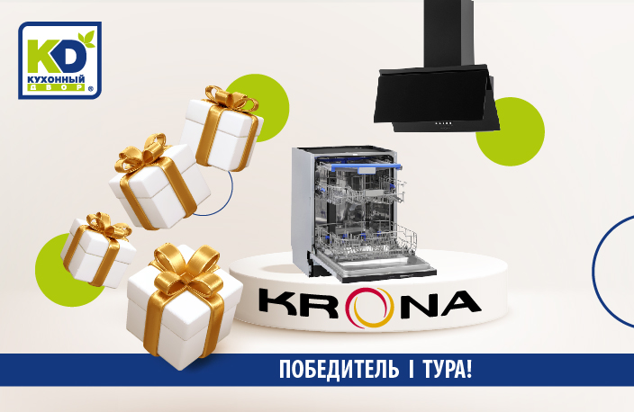 Вы тоже хотите получить новую, современную, сверхнадёжную технику KRONA? Тогда не медлите и становитесь участниками акции! Ещё один обладатель подарка определится уже первого июня, а правила участия можно узнать здесь или в салонах «Кухонный Двор».