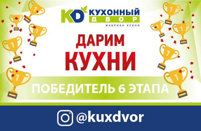 Завершился шестой этап акции «Дарим Кухни»! На этой неделе скидка на мебель в размере 100 000 рублей досталась Плотниковой Елизавете!