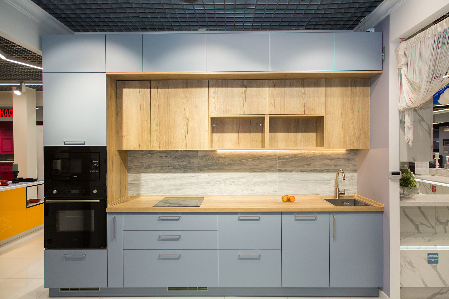 Обращаем Ваше внимание, что цена за погонный метр включает в себя: фасады выбранной категории, влагостойкую столешницу HPL (Германия) высокой прочности, корпуса ЛДСП Egger (Германия) с кромкой ABS, ящики с доводчиками , петли с доводчиками, ручки, алюминиевый поддон в стол под мойку, сушка (Италия), цоколь Volpato (Италия). Из расчета в размере 2400 мм.