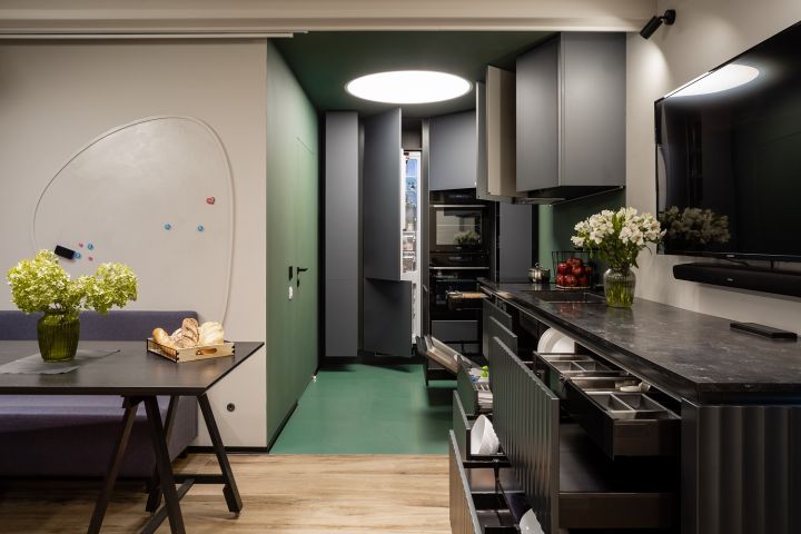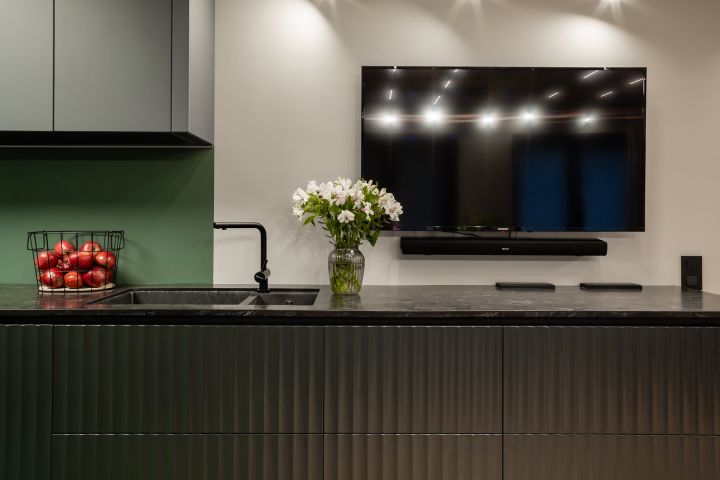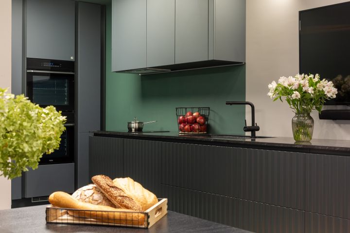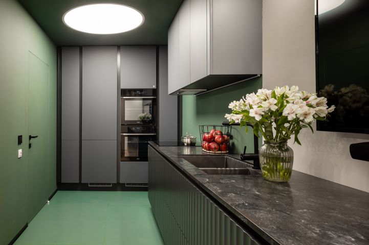 Кухня в сером цвете с фрезерованными фасадами (Кухня Патриция + Эмма)